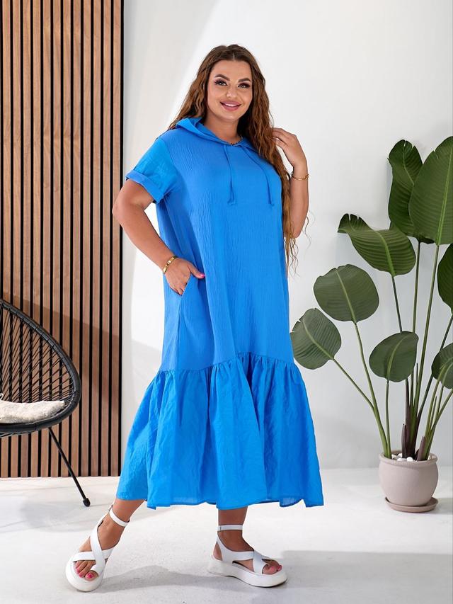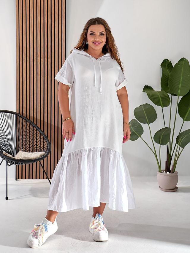 Літнє жіноче плаття максі батал з капюшоном із жатки та бавовни 50–60 50-52, 54-56, 58-60